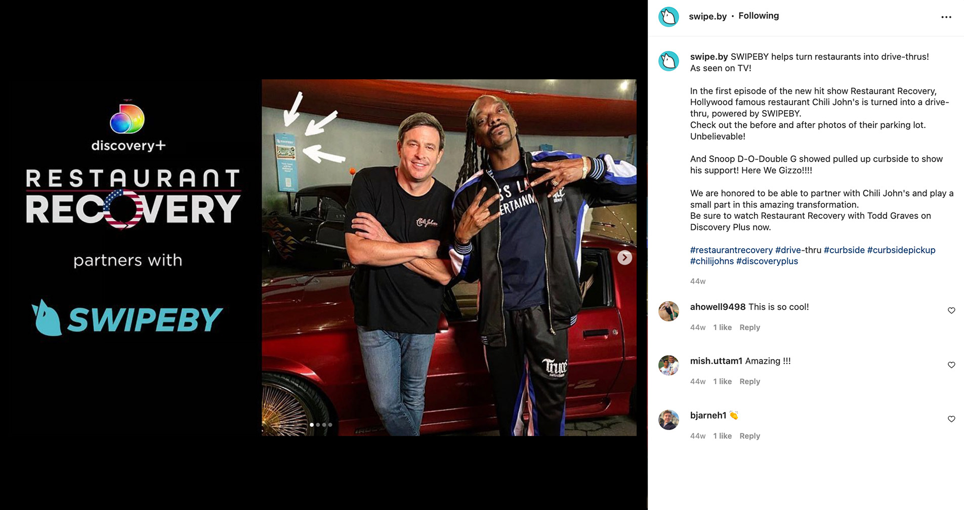 Swipeby was featured on Discovery+ Restaurant Recovery with SnoopDogg!